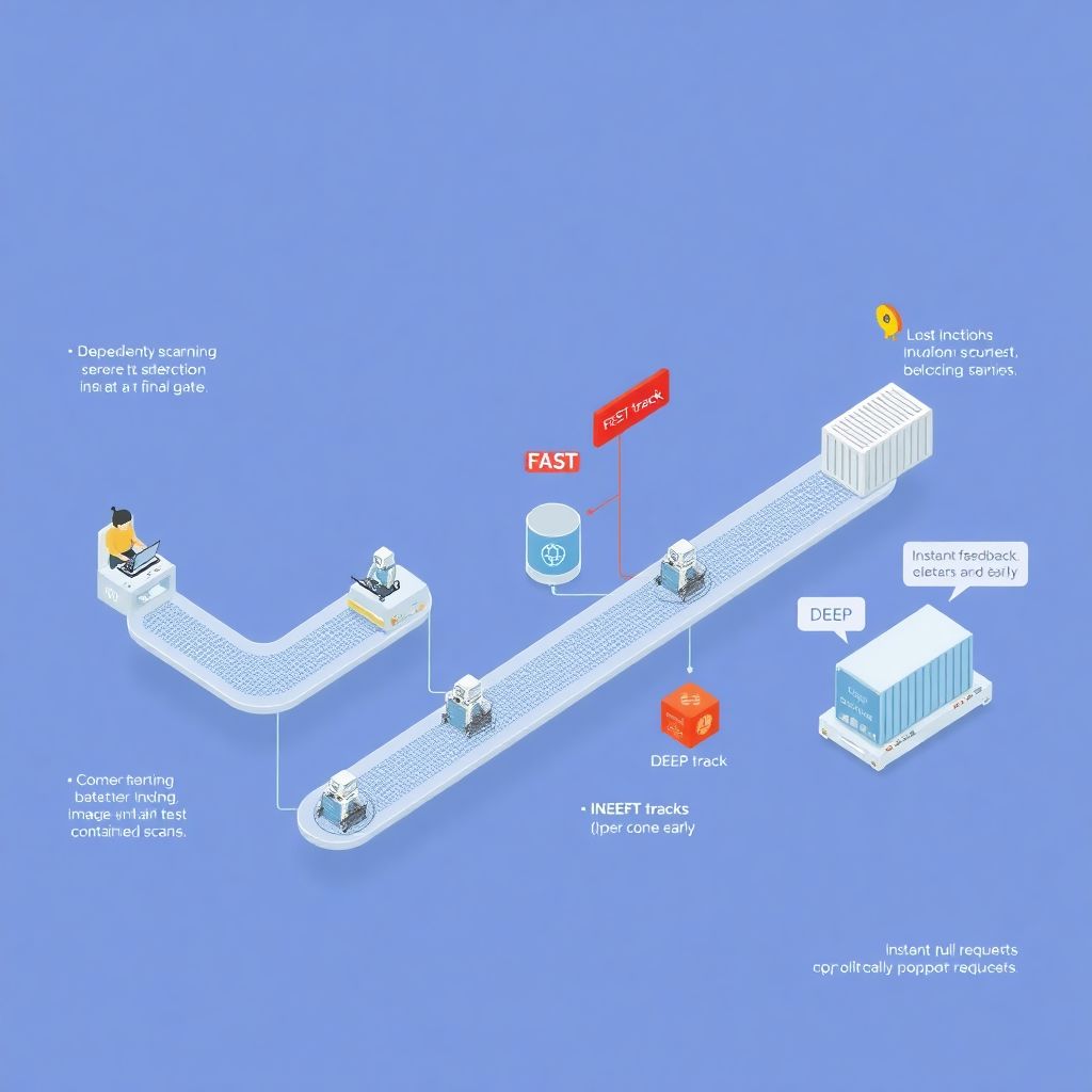 Uma solução pouco explorada é dividir o pipeline em dois fluxos: um rápido, obrigatório em todo commit, e outro mais pesado, rodando em paralelo ou em horários específicos. No fluxo rápido, você mantém o mínimo viável: lint, testes críticos e scanners leves. No fluxo profundo, executa SAST completo, varredura de IaC e análise dinâmica em ambientes de staging. Dessa forma você não sacrifica feedback rápido para o desenvolvedor, mas também não abre mão de checagens mais demoradas, necessárias para serviços expostos à internet e dados sensíveis.